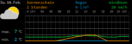 Aktuelles WetterTemperatur7 °CLuftfeuchte rel.99 % Luftdruck steigend999 hPaTaupunkt6 °C Wind6 km/hRegen aktuell je Std.0,0 l/m² in Böen10 km/hseit Mitternacht0,4 l/m² Gefühlte Temperatur5 °CSolarstrahlung0 W/m²